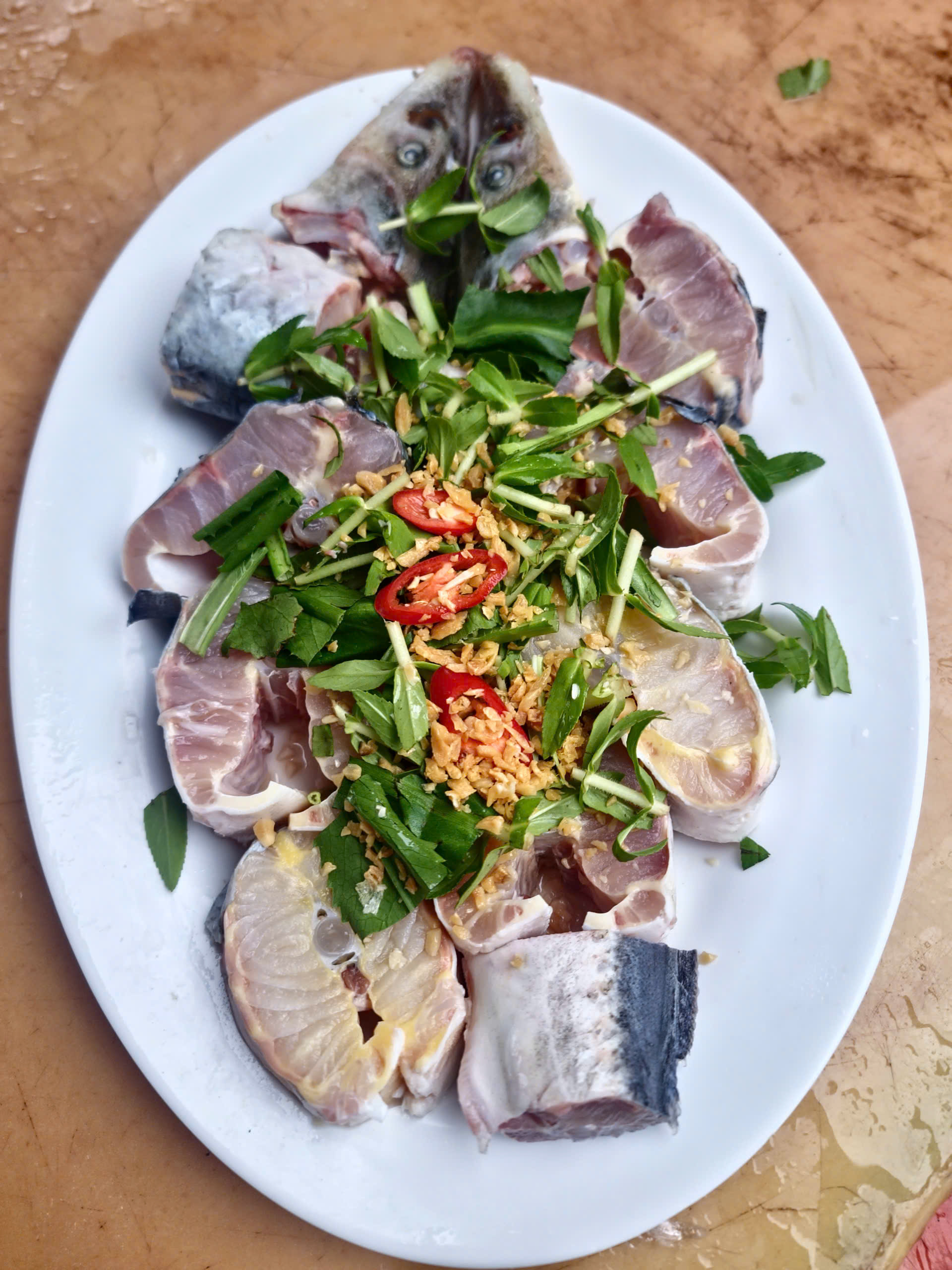 Cá tầm nấu mẻ ngon nhất khi ăn nóng, cá mềm mọng, nước canh chua ngọt hài hòa, rau muống và bắp chuối giữ độ giòn tươi mát. Ăn kèm bún giúp bạn cảm nhận trọn vẹn vị thanh mát, đậm đà của món ăn. Đây là món chính lý tưởng cho bữa trưa hay bữa tối gia đình, vừa nhẹ nhàng vừa bổ dưỡng.